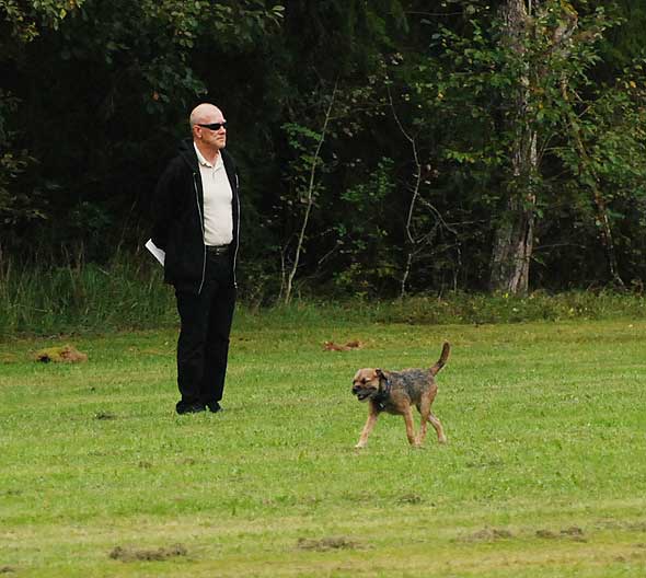 Tungapport: 0 Han sprang ut, blängde på apporten, gick runt den, sparkade på den… Eftersom jag insåg att det var kört med poängen gick jag fram och såg till att han trots allt apporterade den. Han ska ju liksom inte komma undan bara för att det är tävling!