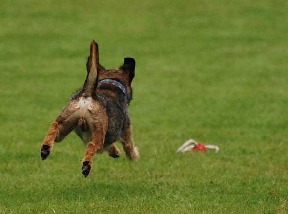 På väg hem från Kind insåg jag att vi faktiskt är anmälda till lydnadsklass III, på lördag. Med tanke på spårtävlingarna har väl fokus inte direkt legat på rutor, vittringsapporteringar och fjärrdirigeringar sista tiden. Alltså mellanlandade jag på Elfsborgs BK på hemvägen och tränade en del av momenten, med blandat resultat. Men vi avslutade med något han är riktigt, riktigt bra på; att hämta bollar som matte slängt…