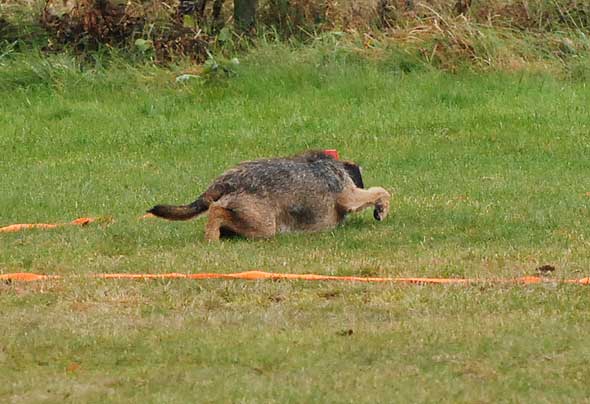 Rutan; 7 (Spikrakt ut i bra tempo och jag fick stopp på honom i tid, men … det var något i rutan som luktade väldigt gott?! Han knycklade ihop de små söta öronen och det krävdes ett par extra kommandon innan han knycklade ihop även benen – i slowmotion. Sen kröp han en liten bit för att kunna lukta ordentligt? Resten såg jag inte så mycket av men det var nog bra för det står inget i protokollet.)
