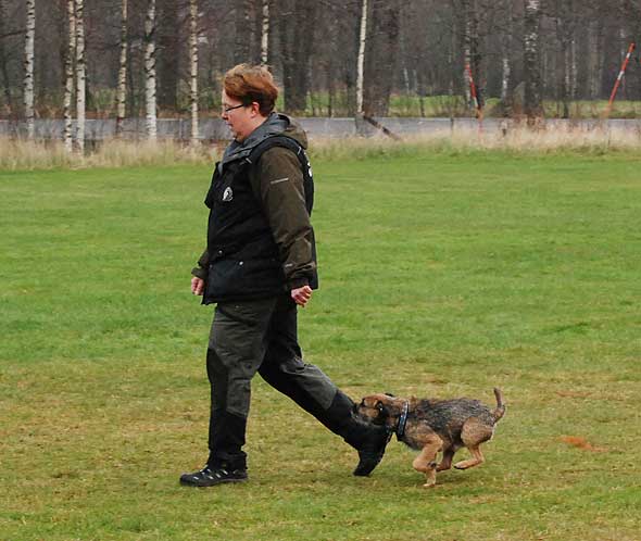 Men … för första gången i världshistorien fick vi betyg på alla moment i klass III! Inga 10:or, men heller inga nollor. En rolig detalj var att dagens domare var samma som dömde på tävlingen i september. Hon är inte känd för att ge några gratispoäng. Det gjorde hon inte då, och det gjorde hon inte nu. Hon var dock i det närmaste lyrisk av attitydförändringen hos det lilla virvelmarsvinet. Hon såg nog en ännu större skillnad än vad jag gjorde. 🙂