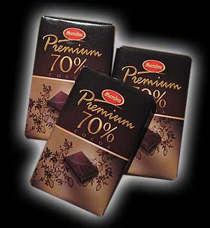Jag införskaffade en s. k. presentask med 21 bitar, à 10 gram, mörk choklad.