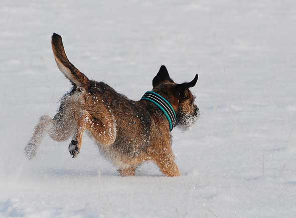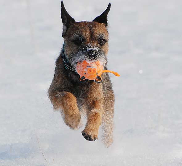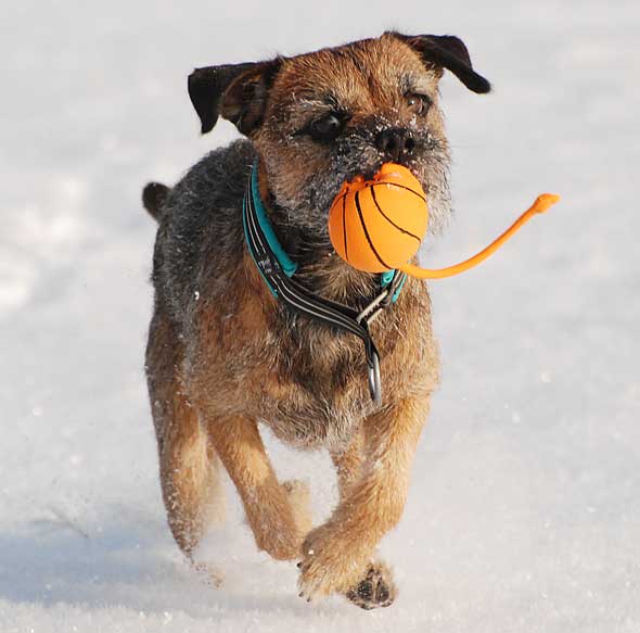 Om någon undrar varför han alltid har en pip i käften på alla springbilder så är det för att utan den (eller något annat som piper/man kan kasta) lämnar han mig inte med mer än 5 meter och det blir lite svårt att fota då. Inte blir det så mycket action heller. 🙂