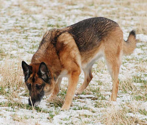 Igår blev det, mot alla odds, sökträning. Morgonens temperatur bådade inte gott men det steg en del under dagen så vid 13-tiden körde vi igång. Vi kan konstatera att tre veckors uppehåll inte är nyttigt för någon i ekipaget. Jag vet inte vem som var mest förvirrad av mig och terriern? Priset togs nästan på slutet när vi skulle köra markeringsövningar och för att göra det lätt för oss valde att göra det utmed vägen där bilarna stod. Tyvärr hade vi lite otur när vi tänkte… Som första ”fig” la vi matte till den höglöpande tiken, och matten la vi på ett område där den höglöpande tiken troligen rastat sig på väg till rutan. Det blev milt uttryckt tilt i hjärnan på terriern som helt glömde vad han höll på med. Lösrulle – que? Springa till matte med den – que? Det mesta var ett stort QUE? Och det höll till viss del i sig under resten av markeringarna även om vi bytte figgar till de med lite mer neutral doft. 🙂 Nu satsar vi på lördag för nästa pass och hoppas att vi är lite bättre organiserade. 🙂
