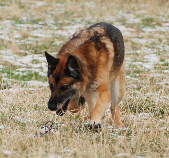 Och snälla Iza får nöja sig med en av de mindre bollarna… Men ibland fintar hon bort honom. 🙂
