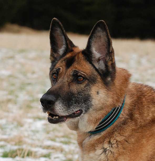 Min galna, glada, snälla, vänliga, härliga, söta, hoppiga, tossiga, arbetsvilliga, matglada, ivriga, orädda, nyfikna, sociala, tillitsfulla, pigga, egensinniga, impulsiva, explosiva och anpassningbara schäfertant fyller 12 idag … och beter sig inte det minsta som en tant. 12, som i tolv, det är många år det, med en korthårig skånsk jaktschäfer. 🙂 Det har inte alltid gått på räls, och många av mina gråa hår har nog hon orsakat, men trots allt har vi mest haft roligt på vägen.