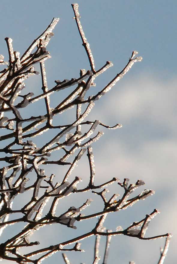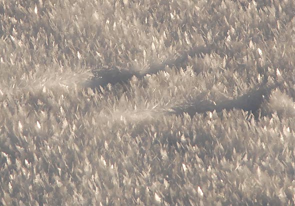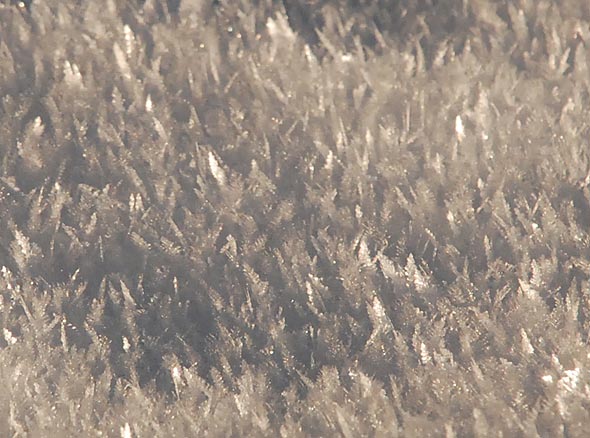 Snö som ligger still utan att föröka sig får efter ett tag ett lager ludd, tillverkat av frost, och en solig dag blir det rätt spektakulärt.