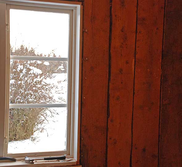 Trimbordet, som skymtar till vänster, har också varit till god nytta under renoveringen. Tur att man skaffade terrier så man har någonstans att ställa färgburkar, lägga verktyg etc. 🙂 Och att man började med lydnadslydnad så att man är försedd med mååånga vittringspinnar. De får väl frysa ihjäl i lagården ett tag igen efter den här pärsen.