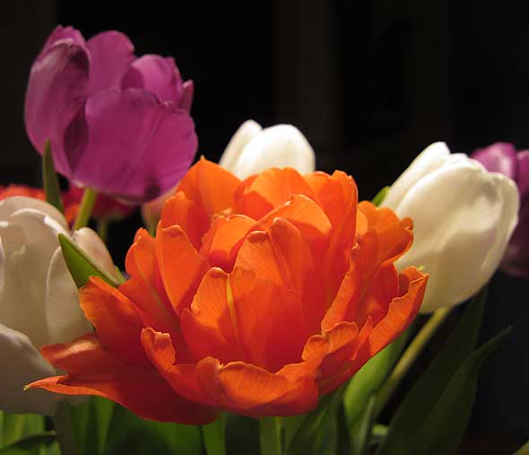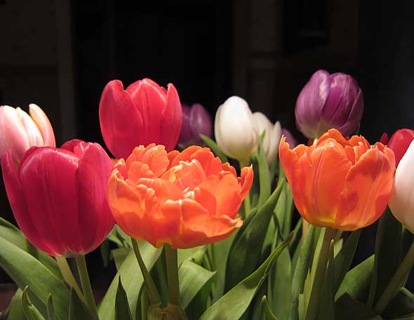 Här kör vi, av förklarliga skäl, inte med pausmusik. Vi kör med paustulpaner! Nog så viktigt eftersom (den låga) temperaturen idag kompletteras med mulen himmel, vind och … lätt snöfall.
