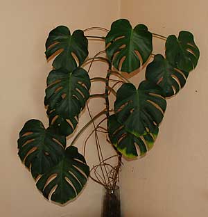 Ett av helgens projekt var att slänga ut ytterligare en gammal trotjänare. Senast var det ju Ivar och nu var det dags för – monsteran. Monsteran som nog har hängt med ungefär lika länge som Ivar… När jag för ett antal år sedan insåg att den antagit odrägliga proportioner och skulle slänga ut den fegade jag ur på slutet och klippte av en ”stump” med ett par blad och satte i vatten i en vas modell större för att se om den skulle utveckla rötter. Det gjorde den. Och i vasen har den blivit kvar, och växt, och växt, och växt. Dock utan att grena sig. Vågar knappt gissa hur länge den bott i vasen men rätt många år är det nu. Det här med jord verkar alltså vara lite överflödigt? Den har dock inte grenat sig utan alla blad har kommit från samma ”stam”. Verkligen inte särskilt vackert men varje gång jag funderat på att slänga den har jag drabbat av grav separationsångest. Men – i lördags åkte den alltså. 😦