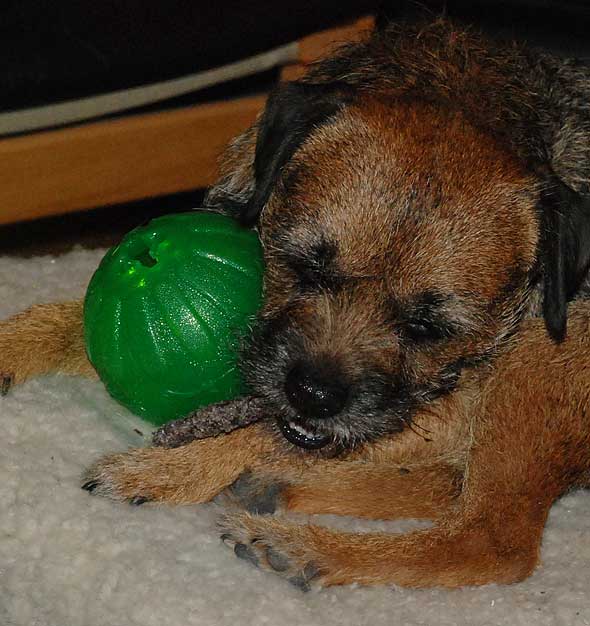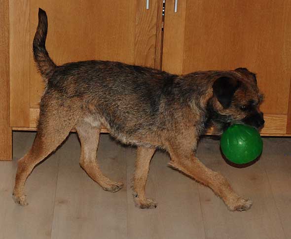 Ofta ser det ut så här. Han tuggar på något annat, men bollen ska han bara HA!
