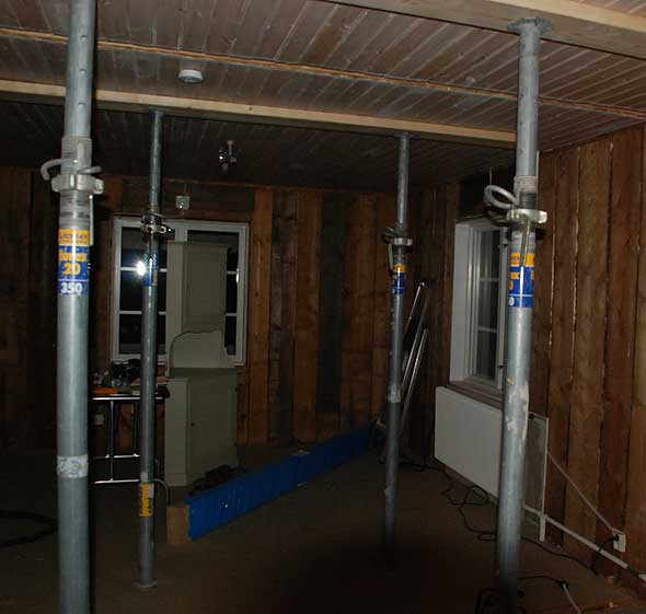 hur många möss som tassar omkring där upp stundtals? Här ska det upp en limträbalk.
