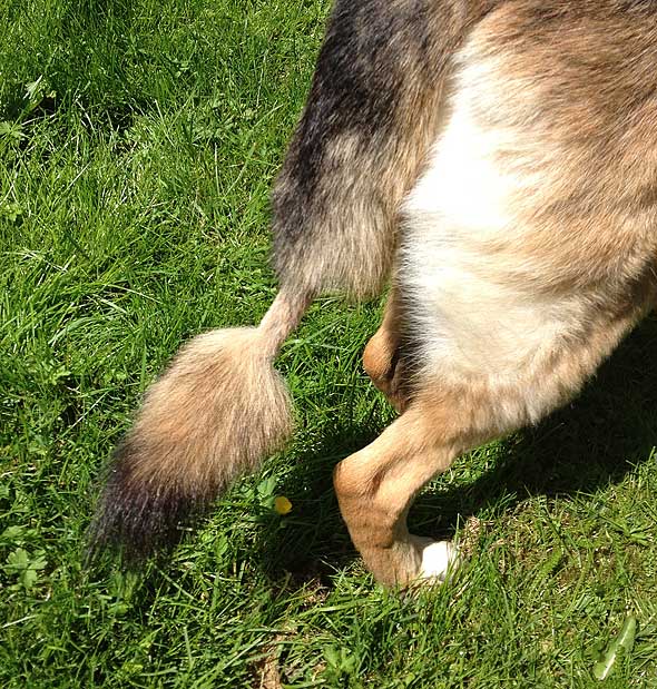 färgen på marken som till viss del satt på terrierns bakben när vi var klara.