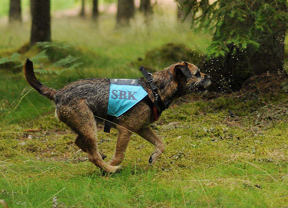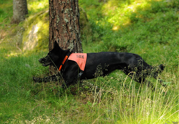 Terriern då? Mindes han något sedan vår senaste träning i Blekingen i april? Jo då, det gjorde han allt. Vi kunde börja ungefär där vi slutade. Jag orkar inte gå in på detaljer men under veckan har vi ändrat en del i upplägget och jag tror det är till det positiva. Den som haft mest problem är nog jag. Logistiken är inte helt lätt! När man trodde att man åtminstone började få koll på vad som ska göras och ungefär när så … ändrar vi på stora delar. Spåret sitter ju liksom i ryggmärgen men vi (läs jag) har mycket långt kvar innan mitt agerande i sökrutan är lika inarbetat… *puh*