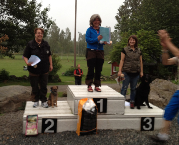 Mest synd den här kvällen var det onekligen om min reskamrat som genom att ställa och lägga hunden för tidigt i rutan (det är uppenbarligen fler som har problem med avståndsbedömningen) nollade momentet och därmed missade förstapriset. Samma utförande men med stopp en meter längre fram hade garanterat gett minst betyg 8 och det hade räckt… 😦