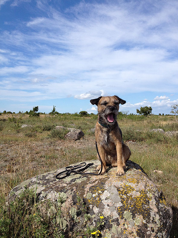 Väderfacit: växlande väder med en hel del kortare skurar och rätt svalt. Utom när man gärna hade sett lite moln. Med andra ord tillbringade husse en hel del tid vid bilen med uppfälld baklucka för hundarnas skull.