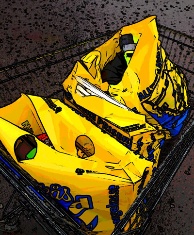 Shoppingen blev inte så avancerad. Dagen innan funderade jag på om det var något vi behövde? Kom fram till – typ ingenting. Sen kom jag på att ett påviskoppel av ny/annan modell än det existerande, som har en tendens att trassla sig, kanske vore bra. Ett sånt blev det, men även två snygga matskålar (turkosa!), ett nytt halsband till Karlsson (turkost, och svart) och en boll (flytande, ej turkos) behövde vi visst också visade det sig. Karlsson tyckte att vi behövde en massa andra saker men jag lyssnade inte så mycket på det örat. Men när man får ner alla fynden i den ganska diskreta ryggsäcken tycker jag väl inte att man har förköpt sig, eller…? Jag kan väl iofs erkänna att avståndet till bilen i kombination med bristen på en sherpa hade en viss dämpande effekt också. 😉