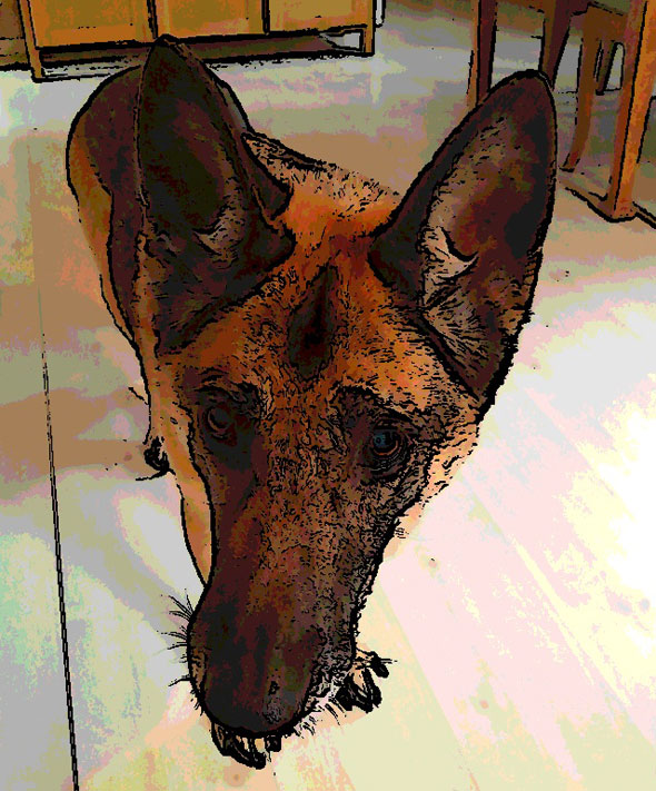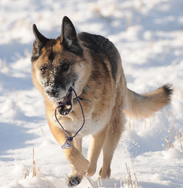 Fy vad det skär i mattehjärtat när schäfertanten börjar bli gammal. Varje steg (nåja) hon tar så tittar jag på henne och ser om allt fungerar som det ska. Det jag kommer fram till är att de främre 75 procenten fungerar alldeles utmärkt, de sista 25 fungerar sämre i vissa situationer, men det tar hon liksom ingen notis om.