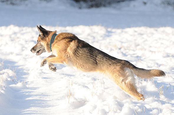 …springa omkring och bli fotograferade i snön. När man ser de här bilderna är det svårt att tro att hon blir tonåring om tre veckor?! Men som sagt; när hon har ”fast mark” under fötterna är det inga direkt märkbara problem med bakkärran. Det är inomhus i låga farter. En kort och rolig fotosejour hade vi iaf igår, när hon var rejält uppvärmd efter lunchpromenaden. 🙂