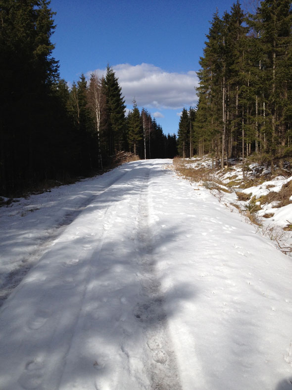 Sen åkte vi iväg och tog en promenad på ett ställe där det var lika tröstlöst seg snö som hemma på vår vanliga runda. 😦