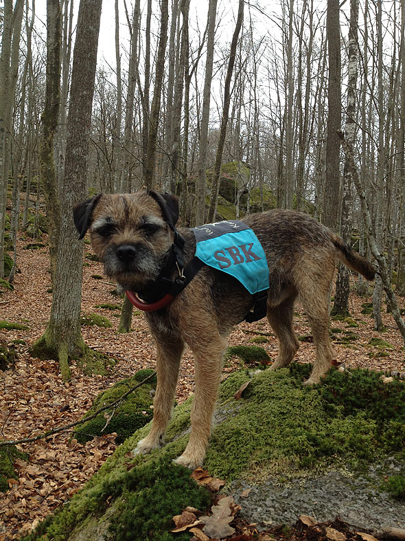 Pipigt, som vanligt men … han var koncentrerad och gjorde något på alla mina kommandon. Han missade inget skifte vilket jag inte kan minnas har hänt tidigare på tävling? På ett skifte (stå/sitt) la han sig istället så jag fick sätta upp honom. Men koncentrationen! 🙂 Den har jag aldrig upplevt tidigare på tävling och detta trots att det stod fem personer ganska tätt bakom honom. Momentet ägde dessutom rum precis vid hindret där det stod en jätterolig back med apportbockar som han varit väldigt nyfiken på innan. Större framåtförflyttning än på de två sista tävlingarna men efter veckans bollkastande, för att få upp koncentrationen och farten, är det inte alls konstigt. Det ”roligaste” i domarprotokollet är att det står ”vp” (=växlar position). Trodde liksom att det var det som var hela grejen med fjärrdirigeringen – att hunden skulle växla position ? 😉 (Antar dock att domaren avser skiftet där det blev fel och jag fick sätta upp honom).