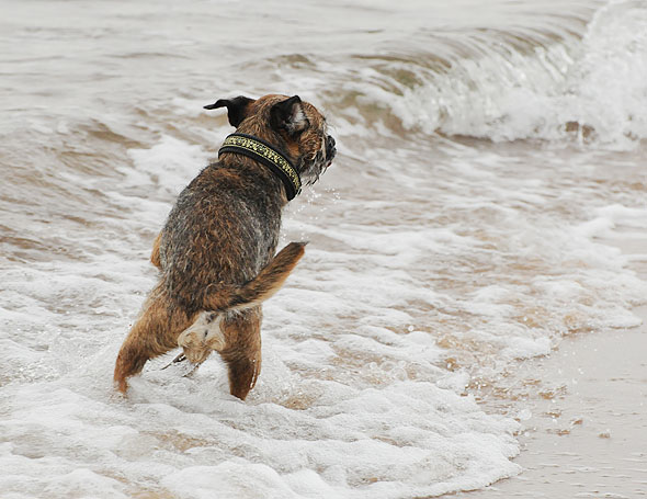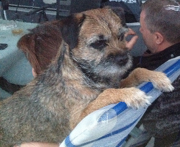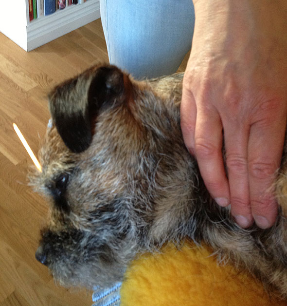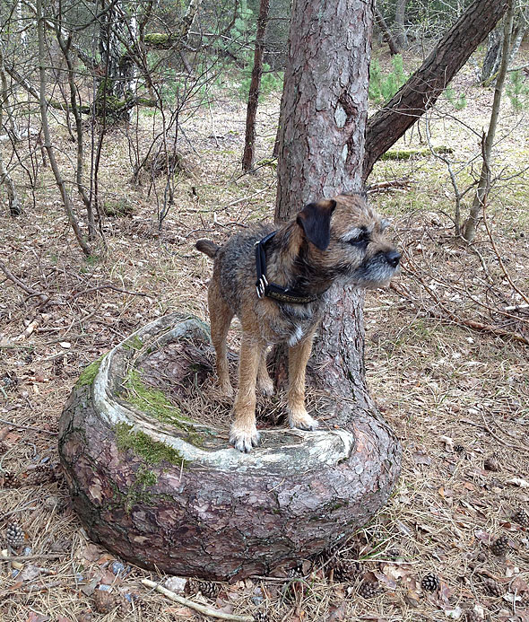 efter avslutad vittringsapportering. Och när man som matte ser den bilden inser man att det är dags för trimbordet igen. Kolla ”gardinen” under magen. Och lockarna på ryggen. 🙂