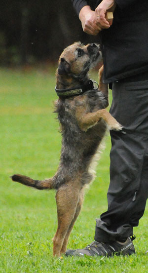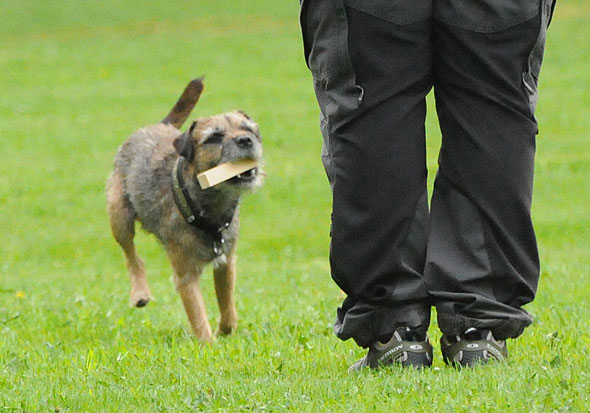 Nåja, det har väl möjligen framgått av ovanstående att vi tävlade igår kväll. Efter söndagens bottennapp har ju veckan gått ut på att ”lösgöra” terriern igen genom ganska ”vildsint” träning. I onsdags fick vi dessutom vara vildsinta under kommendering. Mycket tjo och tjim, bollkastning och godis har det varit. Experimentet lyckades. Kanske lite för bra till och med? 😉