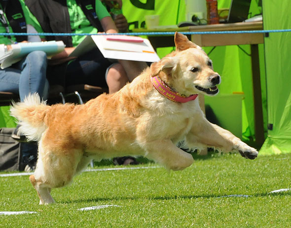 Riktigt snyggt när han väl kom iväg efter ett extra kommando? Den här gången lyckades han välta på rätt sida om ”snöret” också.