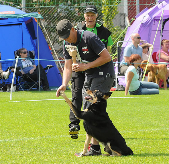 Det var rejält varmt och Karlsson kändes rätt slö när jag tog ut honom innan lottningen så jag var mycket tveksam till hur det skulle gå? Innan det var vår tur att köra igenom programmet ägnade vi oss alltså åt avkylning istället för uppvärmning, dvs avspolning under vattenslang och åt att i möjligaste mån göra ingenting.
