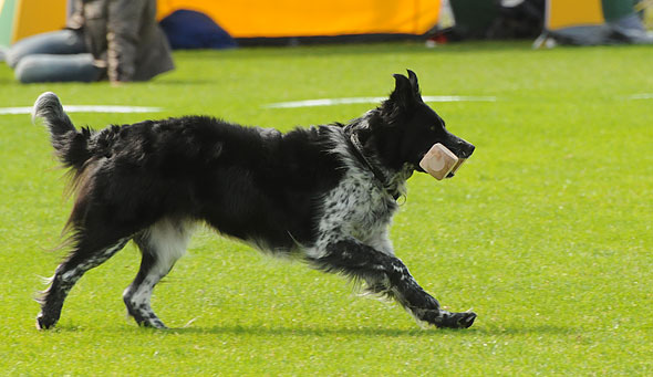 Det märkliga är att rutan och fjärren helt plötsligt funkar hyfsat bra medan våra andra ”säkra” moment (nej, jag vet, INGET är säkert) rasar som korthus? Och hur ska jag komma ur det här med att han tvekar och kräver extra kommandon så fort det är tävling (och idag även vid träning)? Det känns extra surt när han utför momenten så fint när han väl kommer iväg men då har vi redan tappat massor av poäng. Just nu har jag ärligt talat mest lust att lägga ner hela verksamheten för gott… 😦