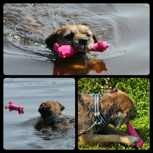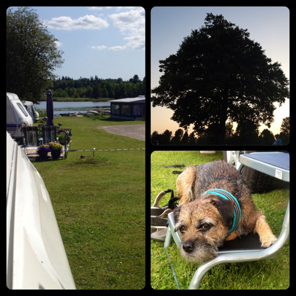 Vi avverkade några mil till efter det stoppet och inför natten hamnade vi på Djulö Camping utanför Katrineholm. Ett bra val! Så bra att vi blev kvar en natt extra faktiskt. Trevlig camping, lugnt och skönt (utom när det var dans på utedansbanan på lördag kväll). Hundarna fick bada och vi ägnade oss åt att ”bara vara” i en hel dag i det fantastiska vädret.