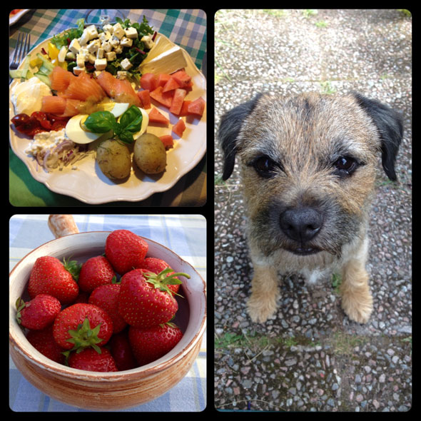 Första kvällen regnade det faktiskt rätt rejält en stund så då fick det bli filmkväll vilket uppskattades av framför allt Karlssons som fick vila sitt söta huvud på en kudde som omväxling. 🙂