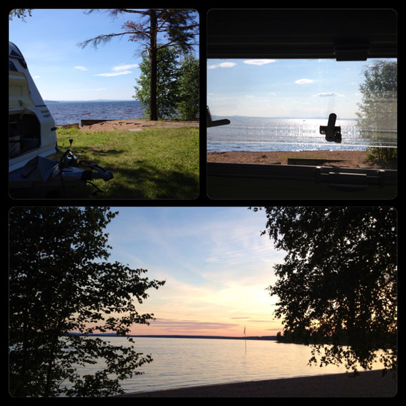 Sen drog vi vidare mot Rättvik och lyckades, mot alla odds, kapa åt oss den (enligt oss) näst bästa platsen på campingen. På en liten kulle där det endast finns två platser, gott om utrymme och relativt lugnt för hundarna som slipper någon som går precis inpå samtidigt som de har full koll. Utsikt över Siljan åt ena hållet är ju inte fel. Tyvärr blåste det en hel del vilket ju märktes extra tydligt på vår lilla kulle.
