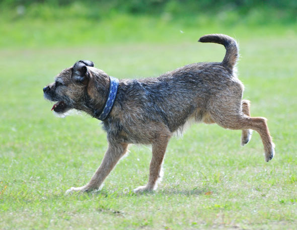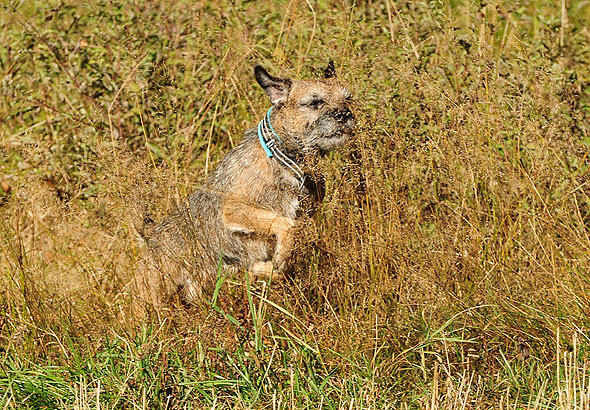 Det var ingen skånsk finruta idag men han höll ändå bra tempo den lilla, trots tjock mossa och blåbärsris. Vi körde figge-figge-tomt-figge-tomt-tomt-tomt-närfigge-figge och han tappade inte sugen det minsta trots tomslagen. Han skällde dessutom duktigt ända tills jag kom fram och beodrade figgen att kasta leksaken till honom. Det tar sig!