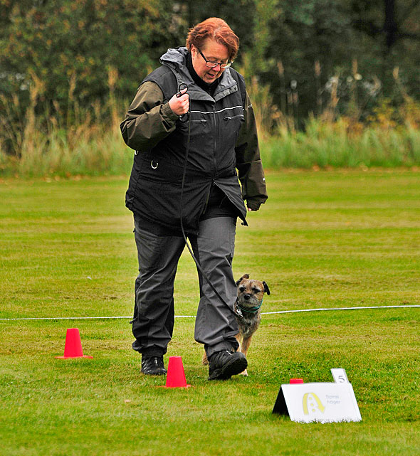 Jag får ju erkänna att jag tycker regelverket känns rätt absurt med sina poängavdrag. Vissa saker som i min värld känns som rätt grava fel ger 1 poängs avdrag. Andra fel, som t ex att föraren inte stannar med fötterna sida vid sida vid en skylt (där man ska göra det), ger -10?! Nåja, reglerna är som de är men i en bruks- och lydnadsskadad hjärna känns det lite märkligt.