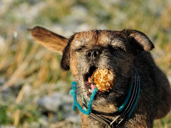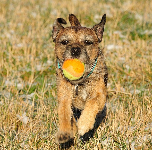 Vi provkörde också bollkastaren jag köpte i slutet av sommaren. Total förvirring rådde innan matte fick ordning på den så att bollen hamnade där både jag och terriern trodde. Vi ägnade en stund åt att tappa bort den lilla camouflagefärgade gappay-bollen också. Att jag aldrig lär mig? Men innan vi var klara var även den återfunnen. 🙂