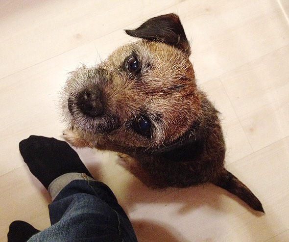 Helt plötsligt kunde han även backa stående vid sidan i hela tre (matte)steg?! Flera gånger? Mycket kvar att jobba på även där men ändå ett stort steg för terrierheten. 🙂