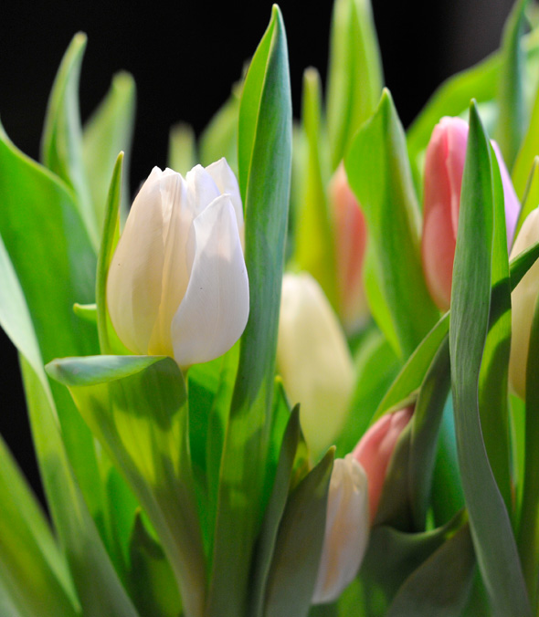 När granen har flyttat ut får tulpanerna flytta in, och det tog inte många timmar. Kanske två?
