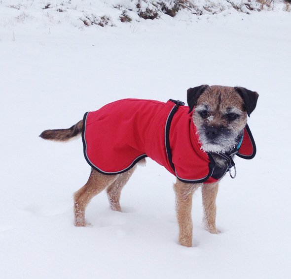 Om man utgår ifrån att det här är någon sorts genomsnittligt snödjup (det har ju blåst och drivit en del) så … är det inte särskilt mycket. Terriern mäter ju liksom 38 cm över manken…