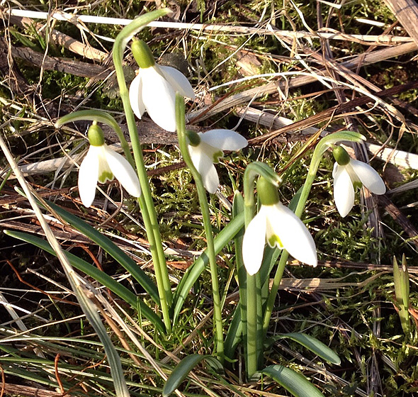 Idag hittade jag, en smula otippat, årets första snödroppar på tomten. I rabarberlandet? Nåja, söta var de i alla fall. 🙂