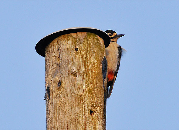 När jag borstade tänderna i morse hörde jag ett märkligt ljud utifrån. Det var den här filuren som tydligen var understimulerad och bestämt sig för att hacka hål i metallplattan i toppen på vår f d elstolpe, numera lyktstolpe. Har man inte att göra så skaffar man sig…