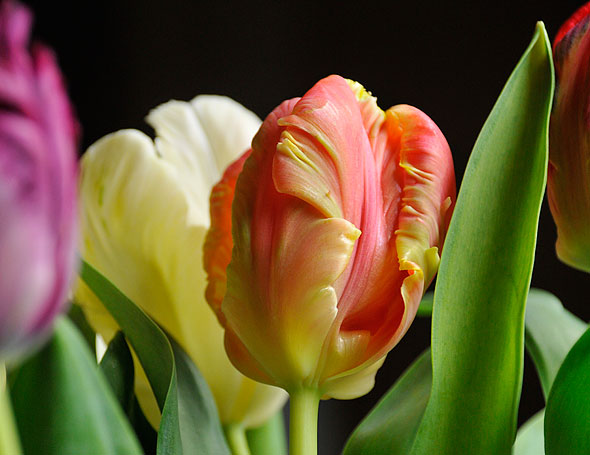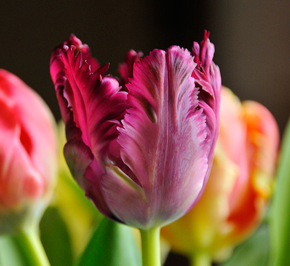 När jag ändå lyckats logga in här kan jag ju lika gärna bjuda på veckans papegojtulpaner. Limegrön! Hur läckert är inte det? De andra är inte heller fy skam.
