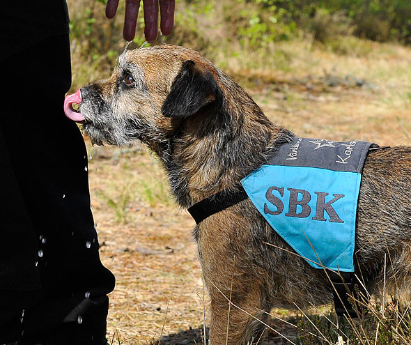 I söndags var vi på klubben och minglade på elitspårtävlingen. Just minglande på tävlingar är något jag sällan ägnar mig åt men det är rätt mysigt när det blir av. Vi passade naturligtvis på att träna skott också, i samband med platsliggningen (halva anledningen till att vi faktiskt åkte). När han är i aktivitet verkar det inte vara några som helst problem, åtminstone inte på rejält avstånd. Vi får se om jag orkar jobba vidare på detta eller om brukskarriären är över. Hade han varit tre år hade det varit lite skillnad men att börja skotträna med en hund som blir nio till hösten känns… sådär. 😦
