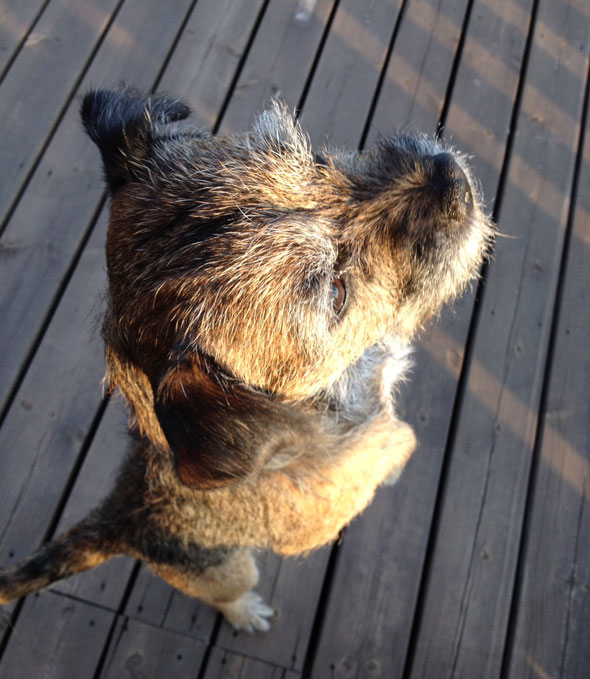 En kväll när han piggnade till tränade vi lite dans (?!) på altanen. Jag hade mest tänkt mig ”stå på bakbenen” (om jag över huvud taget tänkte?) men eftersom han gav sig sjutton på att han skulle in i fotposition så…? Han fick dock stå för dansandet alldeles själv. Vi planerar INTE någon karriär i freestyle eller HTM, helt säkert! 😉