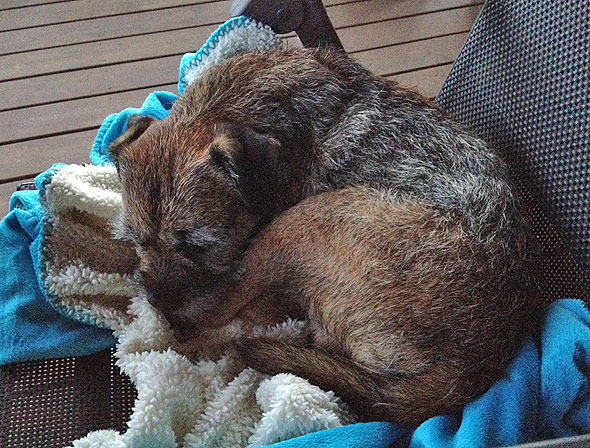 Igår kväll var hussen dödstrött och gick och la sig tidigt. Jag vägrade att ens gå in när det var så ljuvligt ute så jag bäddade åt den lilla hunden i stolen bredvid min på altanen…