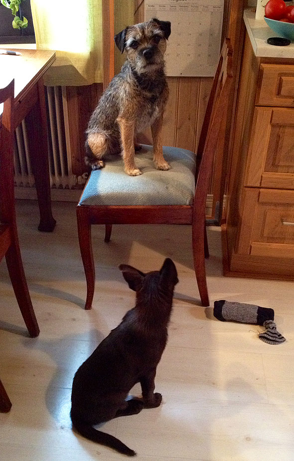 Han har inga som helst begrepp om vad man får tugga på och inte. När matte eller husse säger ”nej” ger jag dem mitt fulla stöd genom att skälla allt jag kan och då säger de åt mig att vara tyst. Något jag förvisso inte tar någon större notis om men fattar de verkligen inte att jag bara vill hjälpa till?