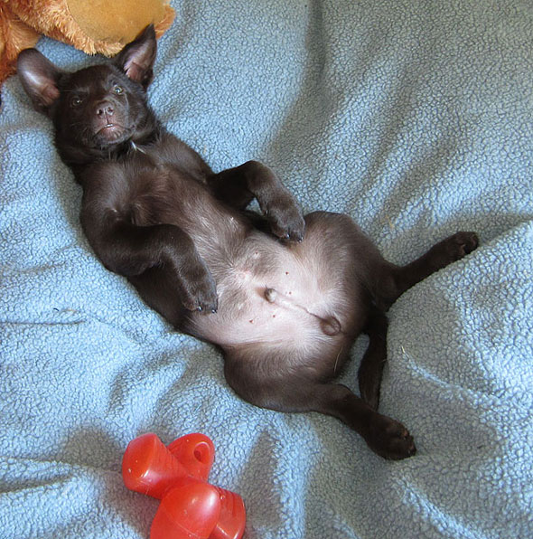 Nu har vi precis kört lunch-skiftet, inklusive kortare promenad, och nu ser det ut så här. 🙂 Naturligtvis föregicks det av raglaomkringsomettfylloochtuggapårandomsaker-fasen.