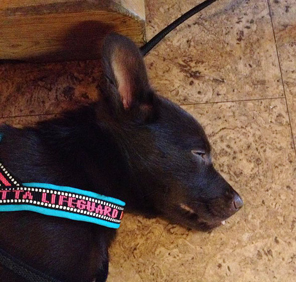 Efter det fick han vara mötesmaskot, först på ett styrelsemöte av kortare modell och sedan på månadsmötet. Det gjorde han på ett förträffligt sätt, nämligen genom att sova sig igenom båda mötena. DET är en äkta brukshund. 😉