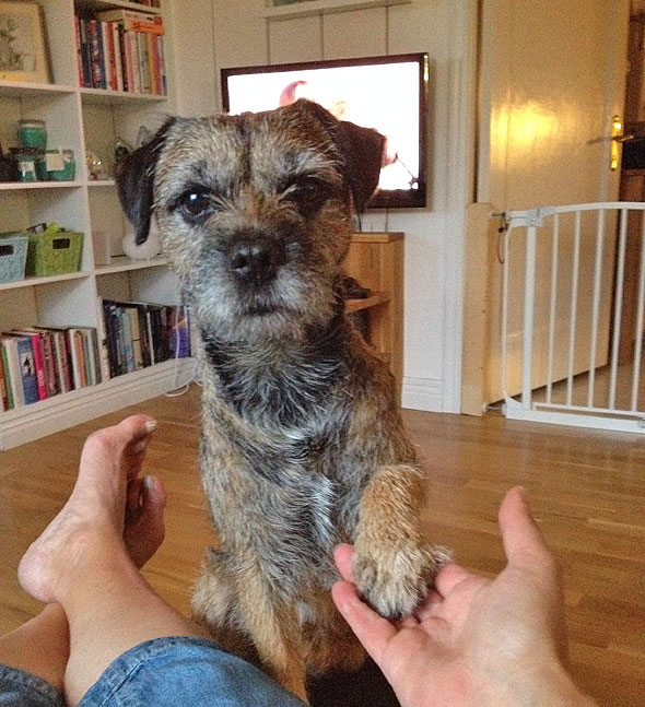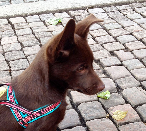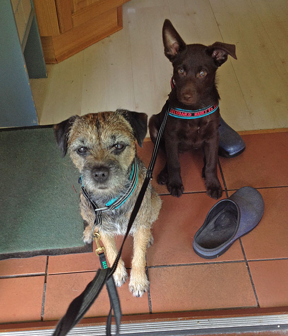 Ibland kan vi dock uppföra oss riktigt bra. Vi tränar ihärdigt på att sitta snyggt innan vi går ut genom dörren och det börjar fungera riktigt bra. (Mina ”pissetofflor” är det dock ingen ordning på. De bor för det mesta utomhus också, sedan tre veckor tillbaka.)