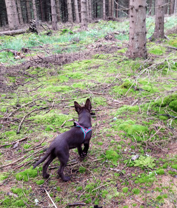 Igår var Karlsson på retreat hos svärmor. Han kan nog behöva en vilodag ibland. Jag och Maro fick alltså gå ut i skogen på tu man tass och det var mysigt. Jag vågar ju inte släppa dem ihop än eftersom jag tror det kan bli lite väl vilt om Karlsson sätter fart så annars får de turas om att gå kopplade. Nu fick Maro vara lös nästan hela promenaden. Han är terränggående (ca 90% av den lilla rundan var ”off pist”) och snabb men lyhörd och följsam. När han satte full fart framåt så vände jag och gick åt andra hållet och det gick faktiskt inte att lura honom. Efter någon sekund märkte han det och sprang ikapp mig. Känns som ett bra utgångsläge. 🙂