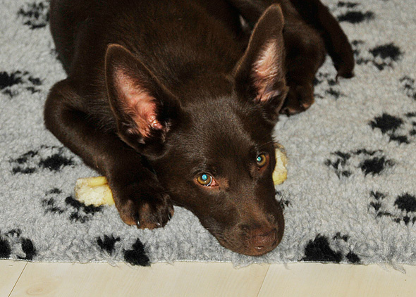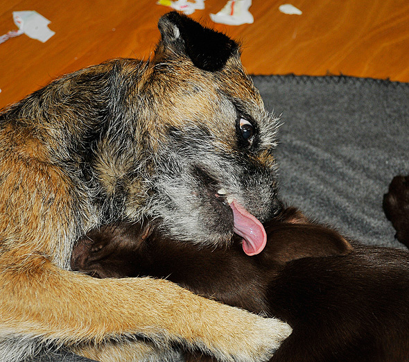 Å andra sidan tyckte Karlsson att det var nödvändigt att låta som en grottbjörn när han hittat en skatt (?!) i form av en del av en demolerad tom toarulle igår kväll. Snacka om fynd, eller…? Att han har en stor portion resursförsvar kom ju inte som någon överraskning men jag ställer mig en smula frågande till hans val av resurser? När jag sträckte fram handen spottade han glatt ut den, men att släppa den till Maro var det inte tal om. Eller rättare sagt; rätt mycket tal…? Nåja, terrier … mycket snack och liten verkstad, förhoppningsvis.